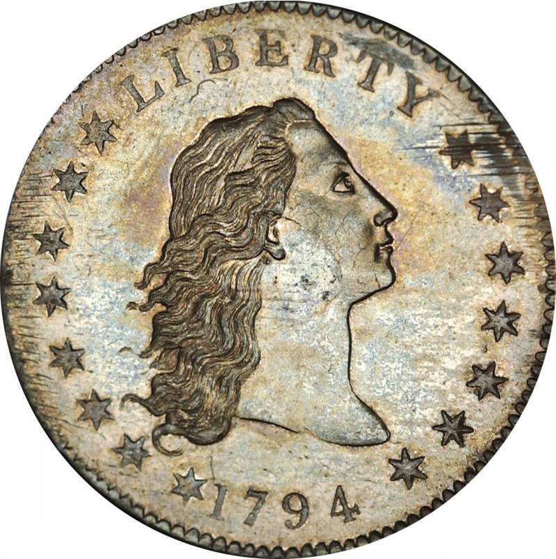 一枚1794年的1美元硬币,于2013年卖出创下世界纪录的1000万美元(网络图片)