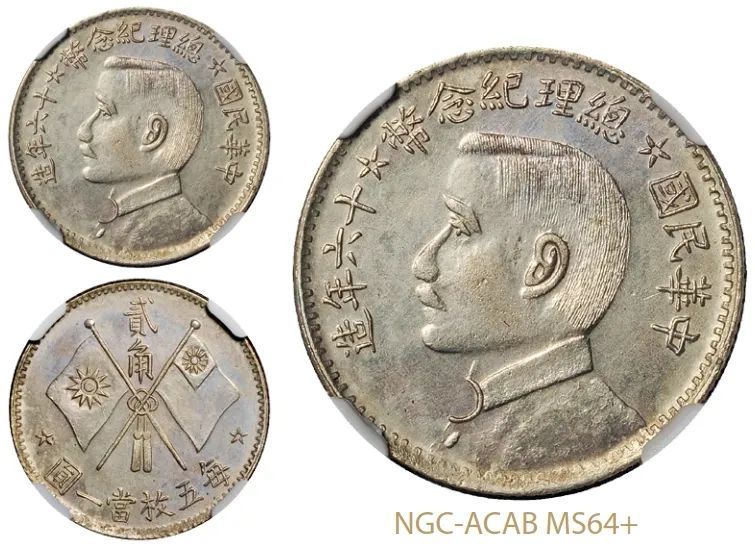 简介:民国十六年孙中山侧面像总理纪念币贰角银质样币一枚,KM-Pn6/LM-848,存世稀少,状态极佳,品种与品相均属难得,资深钱币专家陈吉茂藏品,NGC-ACAB MS64+。