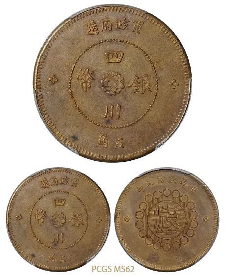 民国元年军政府造四川银币五角铜质样币/PCGS MS62