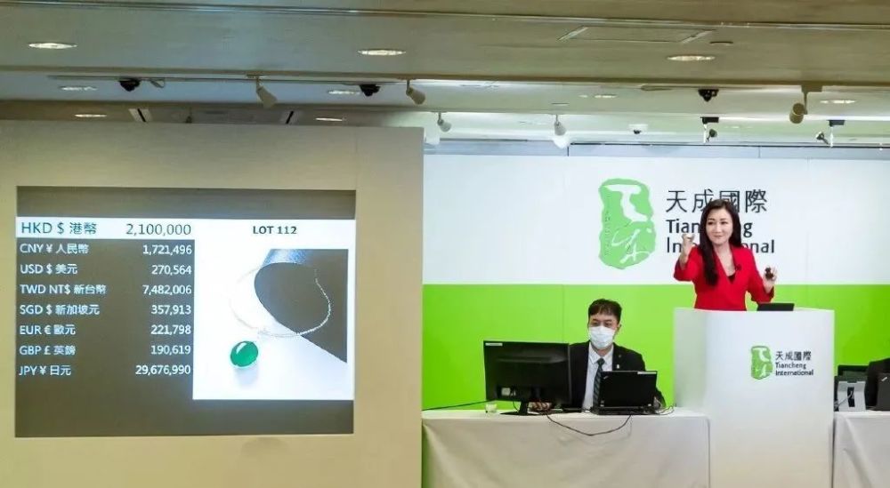 该项链以一颗硕大丰厚的翡翠蛋面为坠,翠色浓艳,镶嵌简约大气,更显蛋面温润亮泽,气韵非凡,最终以252万港元成交,为本次天成春拍翡翠拍品中最高成交价,略低于去年同期春拍。