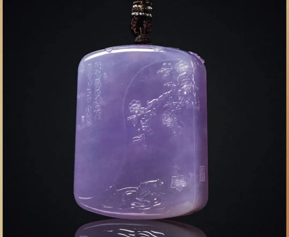 「鸥旋碧海邀紫气」缅甸天然紫罗兰翡翠山水雕纹饰牌