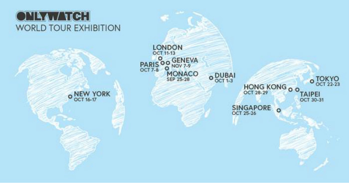 今年的拍卖将于11月9日由佳士得(Christie’s)主持于日内瓦四季酒店登场,在此之前ONLY WATCH将进行全球巡展,于9月25-28日最先在摩纳哥展出,随后经由迪拜、巴黎、伦敦,并于10月28、29日登陆中国香港,最后回到日内瓦,届时表迷也可有幸一睹这数十个顶级品牌孤品的风采。