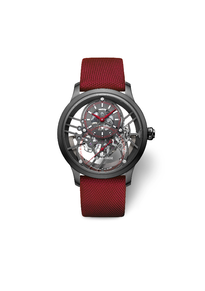 2019年,雅克德罗选择捐赠全新陶瓷大秒针镂空One腕表的独家专享款式,这件作品亦标志着品牌大秒针腕表百年历史上所取得的重大突破。这款独一珍品腕表上的铁轨式刻度(时、分、秒)、相互呼应的三枚金质指针以及手工卷边表带皆经重新演绎,更换为醒目的红色,与黑色陶瓷表壳和小时圈形成鲜明对比,令人想起这一慈善机构总部所在地——摩纳哥公国的国徽和国旗配色。