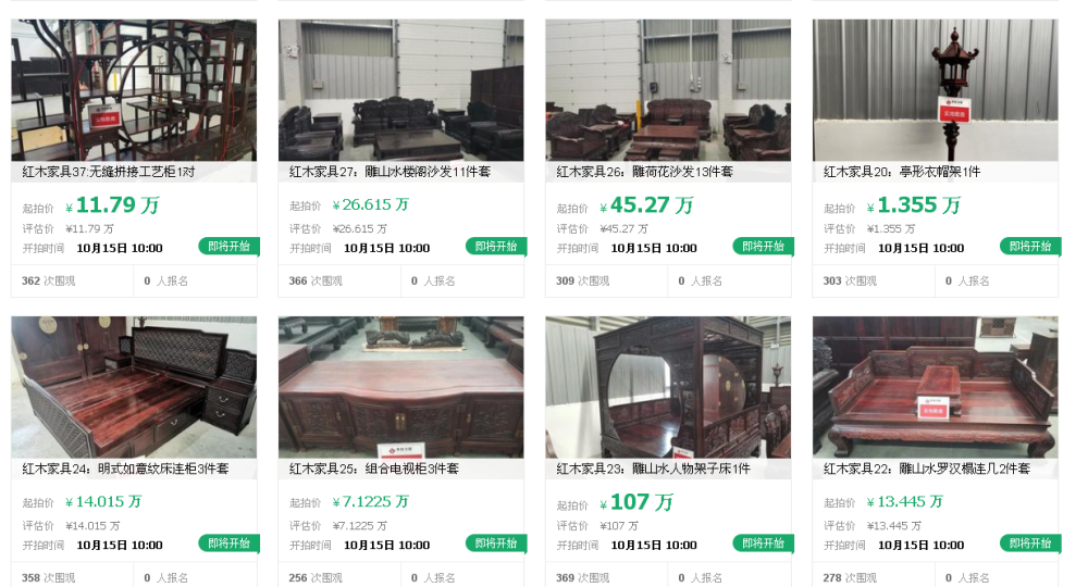 根据阿里拍卖平台,这批名表和家具将会分为两批拍卖,两块卡地亚牌和劳力士牌名表,将于9月17日10时进行拍卖。其中卡地亚牌手表起拍价为3.927万元,劳力士牌手表起拍价为3.15万元。43件红木家具将于10月15日10时开始拍卖。