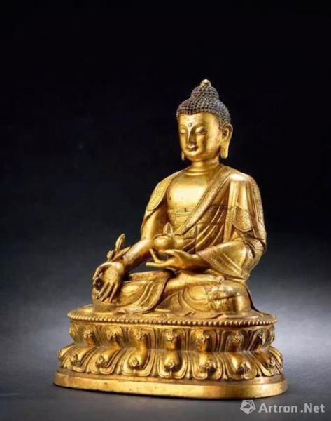 Lot 3203 清康熙 銅鎏金藥師佛 H 21.5 cm. 估價 :HK$ 1,200,000 - 1,800,000 US$ 153,800 - 230,800