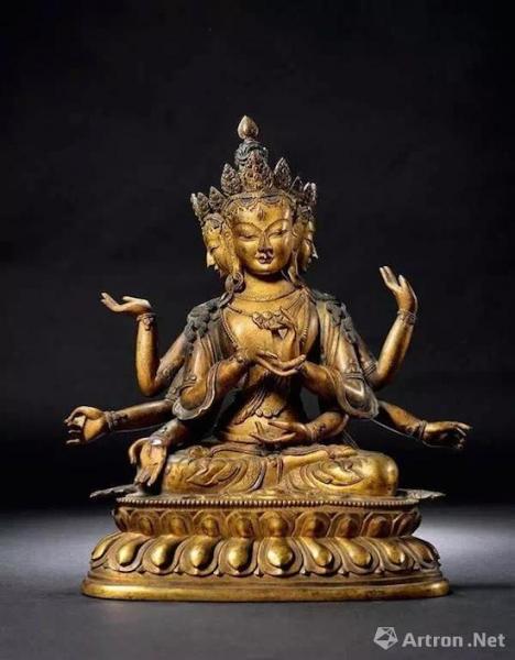 Lot 3210 清康熙 銅鎏金四臂觀音 H 35.8 cm.