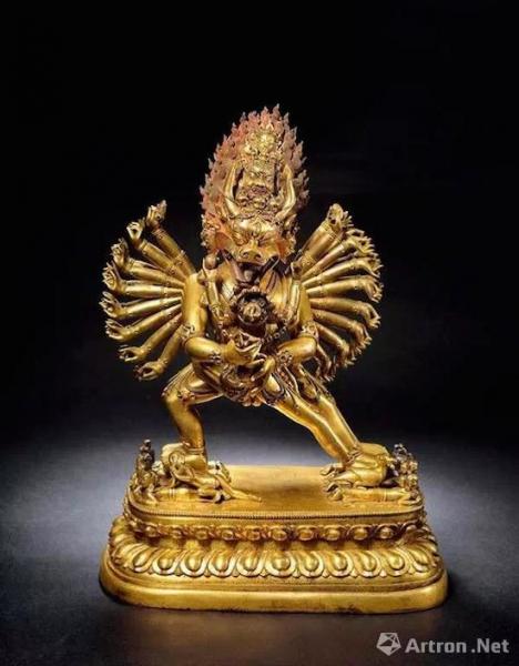 Lot 3237 清乾隆 銅鎏金大威德金剛 H 52 cm.