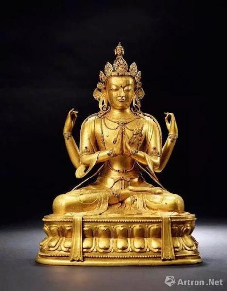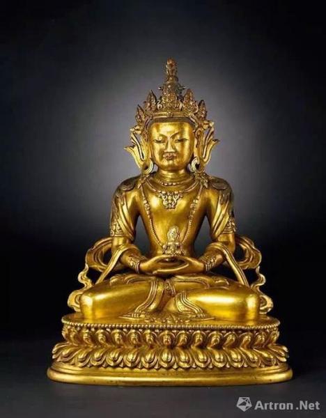 乾隆宮廷造像延續了永宣宮廷造像藝術的精髓,並在此基礎上,創造性地發展出更加華美而具宏闊氣度的造像風格。無量壽佛是佛教尊奉的西方極樂世界主尊,在藏傳佛教中被視為長壽的象徵,因此有著十分重要的地位和影響,歷朝歷代對於無量壽佛的崇拜均十分普遍。乾隆時期,每逢帝后壽辰,清宮造辦處都要大量製作無量壽佛像。