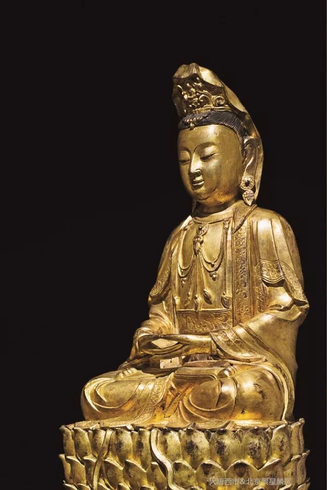 参 阅:北 京 保 利,2014125,Lot8491, 明 铜 鎏 金 莲 花 座 观 音 像RMB:2,530,000