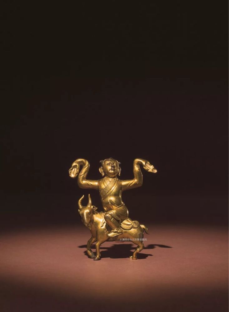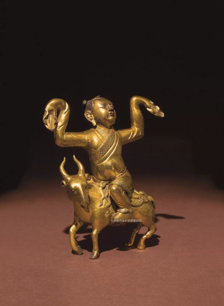 铜鎏金骑羊童子像