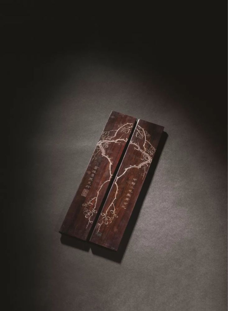 孙星衍刻红木梅花镇纸一对