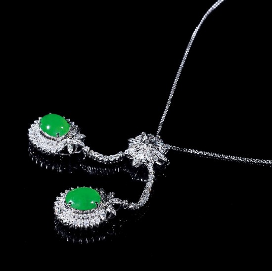 18K金镶冰种正阳色蛋面翡翠双联吊坠连项链