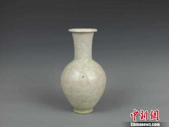 唐邢窑暗刻龙纹白釉唇口瓶。 程景伟 摄