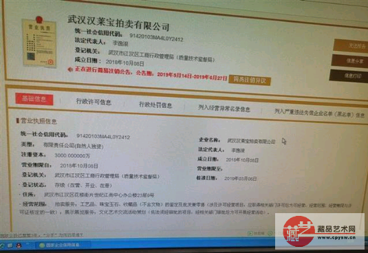 今日下午,楚天都市报记者来到世纪江尚中心办公楼23层,这里没有一家企业叫武汉汉莱宝拍卖有限公司。一楼服务台的工作人员称,这家公司6月初就离开了,具体去了哪里不知道。登陆武汉汉莱宝拍卖有限公司官方网站,在联系方式一栏里电话、传真、邮箱、地址全部为空白。