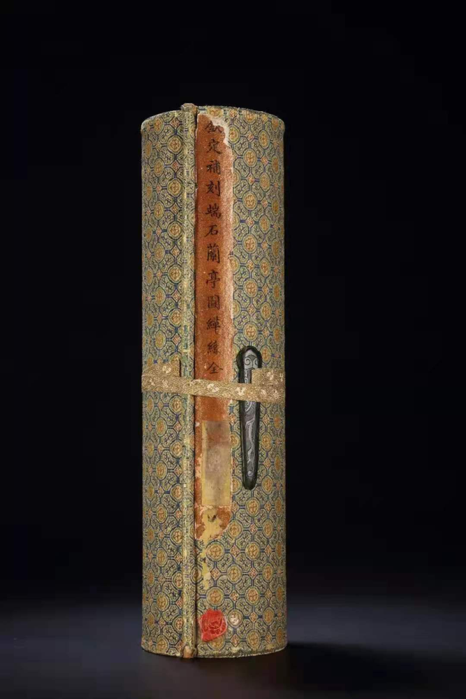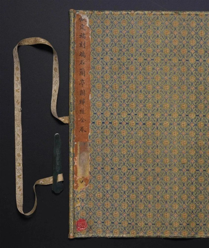 钦定补刻端石兰亭图缂丝全卷(包首及玉别子)