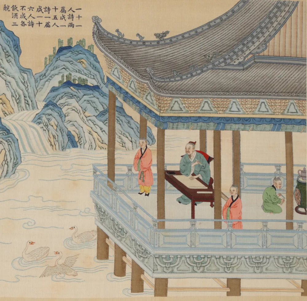 乾隆皇帝一生对“兰亭”文化的推崇达到了登峰造极的地步,从69岁刻制“兰亭八柱”到70岁“补刻兰亭图端石”,再到85岁左右织造完成本卷“兰亭图帖缂丝卷”,包括一生创作的10首“兰亭”御制诗——乾隆建立了一项庞大的“兰亭文化工程”。