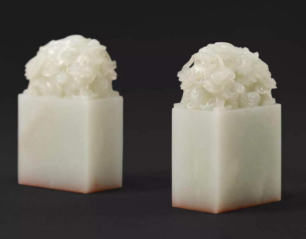 清乾隆御宝交龙钮白玉玺(二方)“八徵耄念之宝”“五福五代堂八徵耄念宝”,此组为乾隆庆贺八十大寿所制,折射出耄耋老人的“勤政”之志。