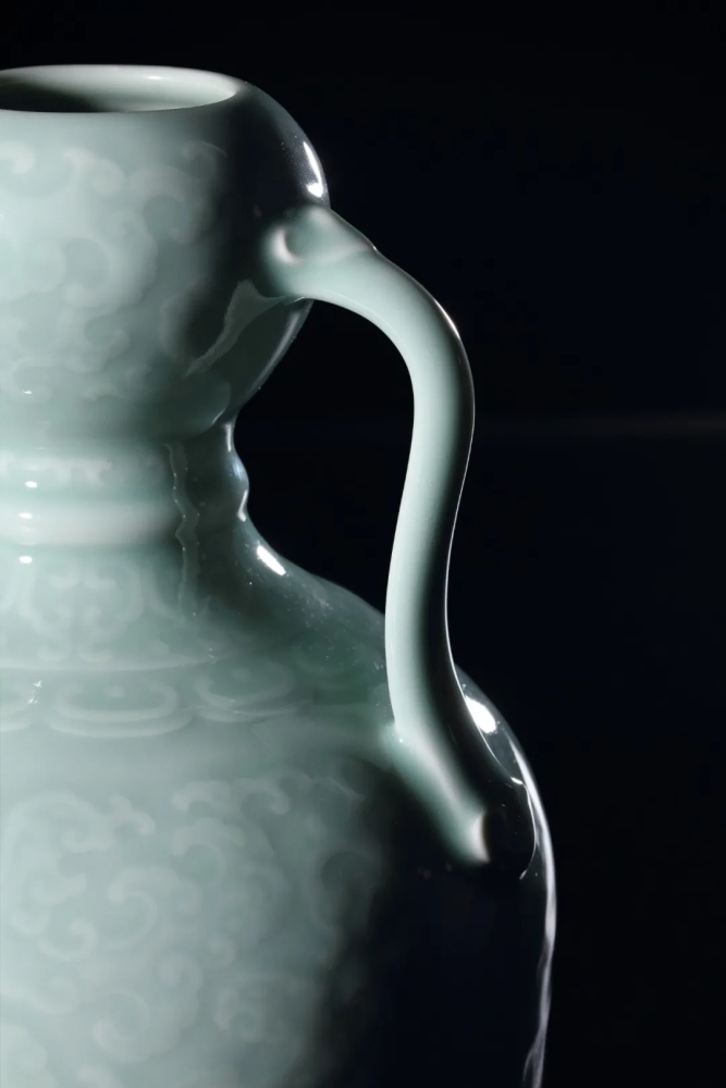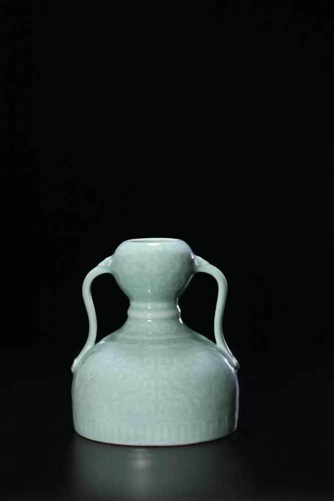 粉青釉浅浮雕夔龙纹如意耳葫芦尊