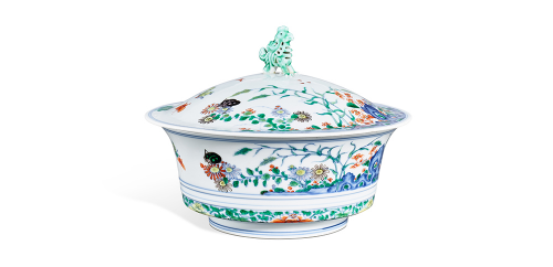 清雍正 鬪彩花蝶纹天鸡钮合盌