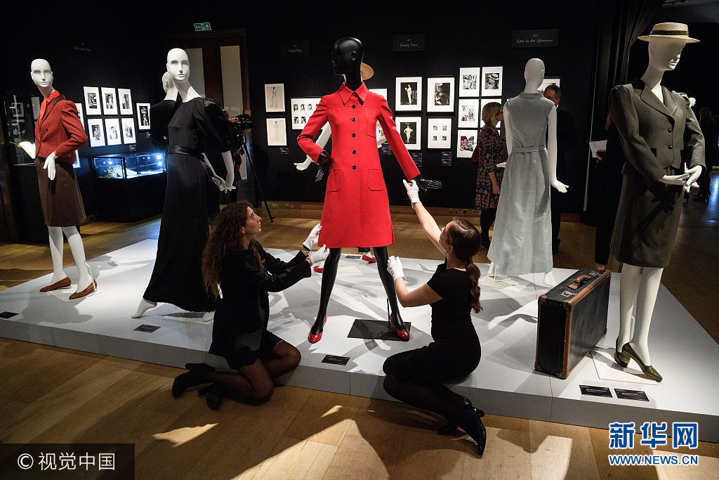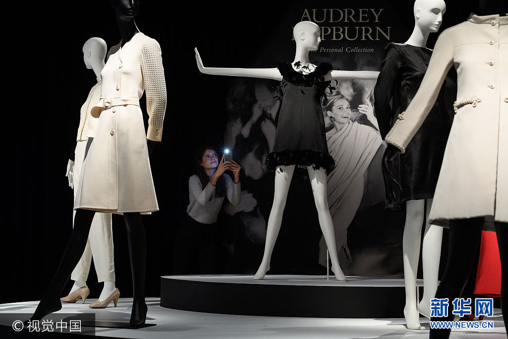 当地时间2017年9月22日,英国伦敦,模特身上战士的是演员奥黛丽·赫本的私人收藏。这些物件将在拍卖会上拍卖总计500件。图片来源:视觉中国