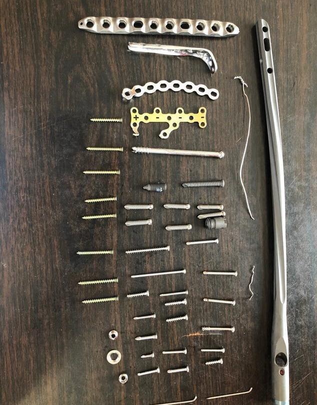 好在之后张云雷在微博上分享了首次手术完成并且非常成功的消息,才让大家为他松了口气。同时还晒出了手术从体内取出的钢钉,总共108块钢板,这场面看着真是让人心头一凉,难以直视。