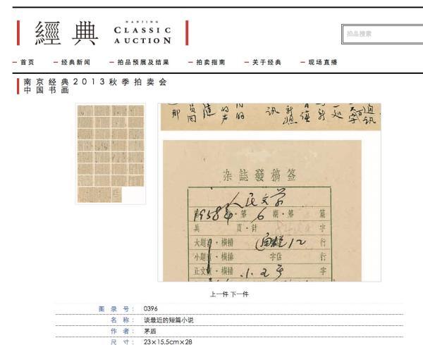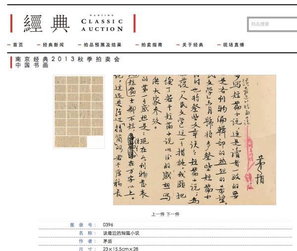也就因为这份手稿,茅盾家属将南京经典拍卖有限公司告上了法庭。