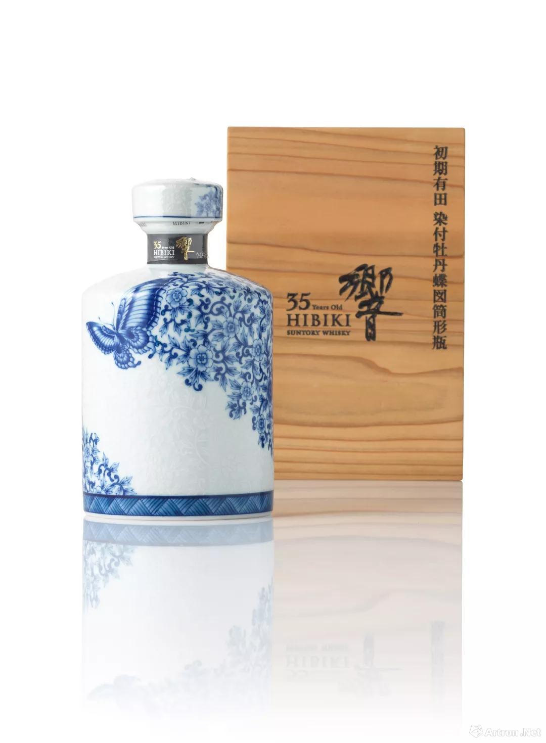 • 響 35年 有田燒 染付牡丹蝶図筒形瓶─35年,贺日本陶瓷四百年特别版一瓶,限量150瓶,成交价港币196,000(估价港币100,000-140,000)。