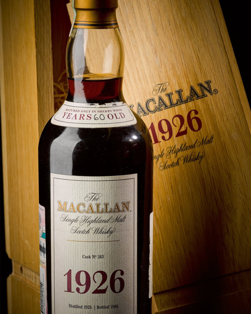 麦卡伦精品稀有酒庄出产的60年前的,1926年成为有史以来拍卖过的最昂贵的葡萄酒或烈性酒。