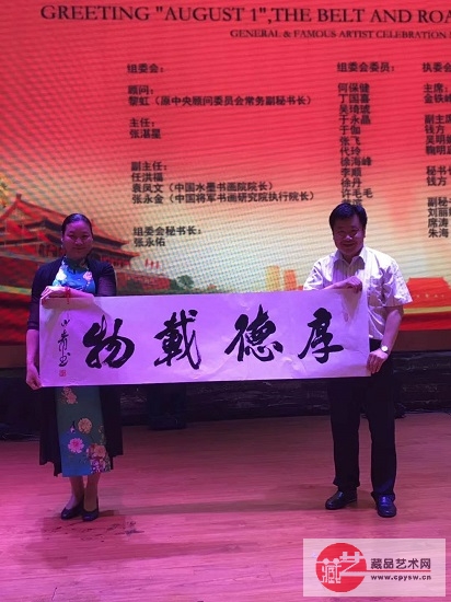 本次大会集中表彰了为“一带一路”国际文化艺术交流所做出杰出贡献的个人,在7月14日上午,主办方在苏州金科大酒店举办的盛大的启动仪式与颁奖典礼,由寄语未来一带一路大会主席团主席张湛星、秘书长于伽颁奖。