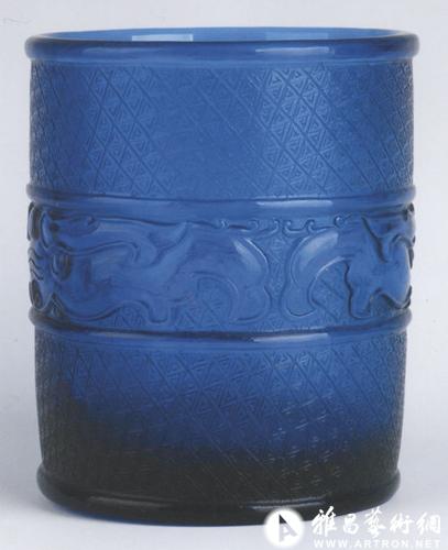 笔者收藏的清雍正料器龙纹笔筒,高12厘米,口径10厘米。琉璃质,圆筒形。直壁,矮圈足,底