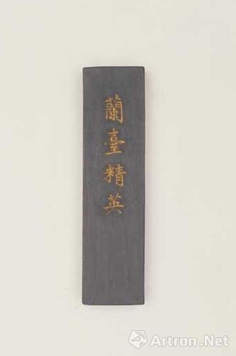 墨长方形。正面阴文填金楷书“兰薹精英”四字。背面阴文填金楷书“康熙乙亥”四字款,下阴文填蓝“织造臣曹寅监制”七字款。此墨质地坚实细腻,蓝彩内蕴,体现了清初墨品的质感及当时崇尚简洁而不事繁华的审美取向。