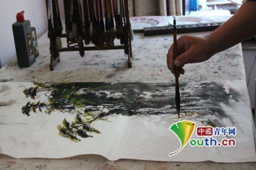 郝智源笔下的山水画。中国青年网 姚小康 摄 在恩师的指点下,郝智源开始游历祖国的名山大川,观察自然、向自然学习。用郝智源的话说,就是通过写生“背山水”。泰山和黄山不同、清晨的山和傍晚的山不同、山顶和山脚下看到山又不同,“画家要把这些记在脑子里,就像电脑储存资料一样,创作时这些山如在眼前,要画什么信手拈来。” “他的作品形象生动、色泽明丽、格调清雅,用笔大胆苍劲,已形成自己独特的艺术风格。”梁树年这样评价郝智源。 “人法地,地法天,天法道,道法自然。”在不断向自然学习的过程中,郝智源的思想也发生了很大的变化,作品也不再局限于对现实世界的描画,开始注入个人的精神内涵,体现浓厚的哲学意味。