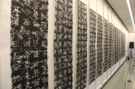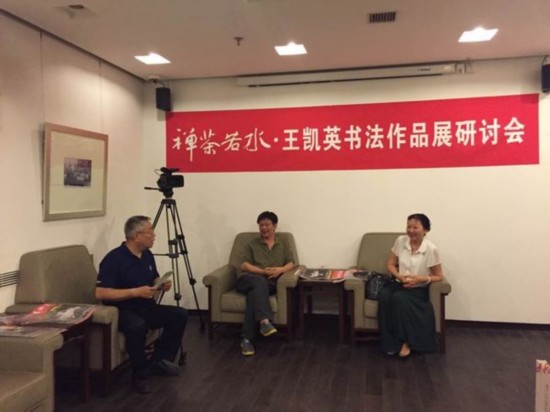 此次展出王凯英近几年来创作的100余幅各体书法佳作。内容由古今诗词和道德经、佛教经典两大部分约十余万字所组成,其中长卷条幅,《泰山经石峪金刚经》,《汉祀三公山碑》拓片18幅,为展览首创研究之作。由敦煌文艺出版社出版的《禅茶若水》上下两册书法作品集在开幕式上同时首发。展览将至25日结束。(采编/侯昱佑)