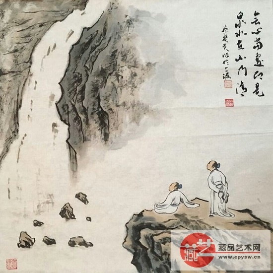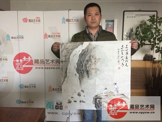 3月24日,藏品艺术网执行总编辑王骊丁收藏一幅由书画家郑振荣和画家蔡宝贵联手创作完成的禅意山水画作