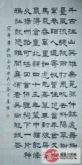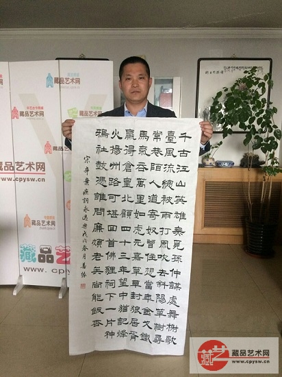 4月8日,由著名书法家袁善缘先生精心创作的“宋辛弃疾词《永遇乐 京口北固亭怀古》”被中国民盟盟员、藏品艺术网执行总编辑、艺委会秘书长王骊丁收藏