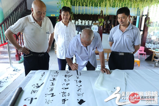黄河新闻网运城频道讯 2018年7月25日,尽管烈日炎炎,酷暑难耐,然而,在夏县德兰度假村景区,却迎来一队尊贵的客人,他们是夏县著名书画家王平善、郝新章、郑玉香、韩跟宝、刘建设、张永安、赵松林、张富国。这几位书画家的到来,对于德兰度假村景区来说真可谓是“蓬筚生辉,”为热闹繁忙来这里休闲消夏的景区增添了不少亮点。