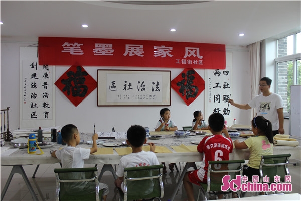 中国山东网潍坊8月3日讯 为了传承优良家风,培养社区青少年高尚的精神情趣,营造浓厚的学习氛围。近日,工福街社区联合益民社会组织服务中心开展了工福好家风之“笔墨展家风”书画小组活动,此次活动由潍坊市资深国画老师为社区青少年倾情授课。 谭老师通过展示传统书画,向孩子们解说家风,将家的形象更加鲜活的呈现出来。在教授过程中,谭老师细致耐心地演示了毛笔的使用方法,从基础功底出发,带领孩子们畅游书画世界,受到了小朋友的一致喜爱。 本次活动的开展不仅加深了社区青少年对书法绘画的了解程度,而且将家庭美德融入其中,让孩子用色彩斑斓的笔墨画展现家庭之美。