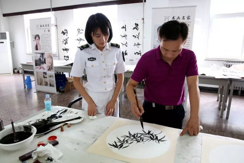 微信号:ddhjzz 『军媒新锐,原创阵地』 夏末八月,流芳滴翠 魅力京西,气墨灵象 近日,海军参谋部组织开展 “永久魅力·时代风采” 知名书画家进军营慰问服务活动 参加此次活动的 8位书画艺术家中 有擅长画人物、花鸟的著名画家 有笔力深厚、写意洒脱 的著名书法家 书画艺术家们挥毫泼墨 现场创作了多幅书画精品 活动现场 他们在妙手丹青、尽献绝艺中 所表现出来的艺术魅力 在官兵心中扎下艺术之根 图文:纪合森 陈晓雷 潘亚飞