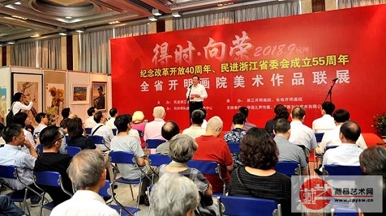 “得时·向荣——纪念改革开放40周年、民进浙江省委会成立55周年全省开明画院美术作品联展”开幕式现场