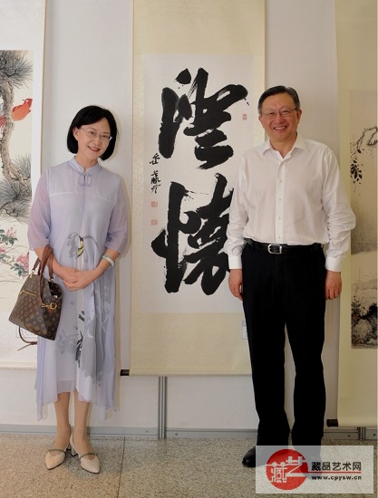 蔡秀军主委(右)在书法家金薇冬(左)作品前合影
