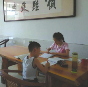 文家姐弟在学习中。