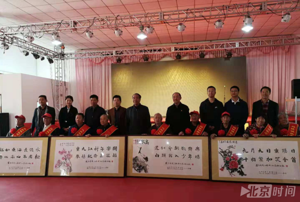 (北京时间记者 杨学雷)10月12日,在传统节日“九九”重阳节即将来临之际, “书画走进北京美丽乡村”创作培训启动暨“弘扬传统节日文化”重阳节敬老爱老活动在“北京最美的乡村”顺义区马坡镇庙卷村举办,书画爱好者走进农民中间,现场进行书画交流创作并将作品敬赠老人。