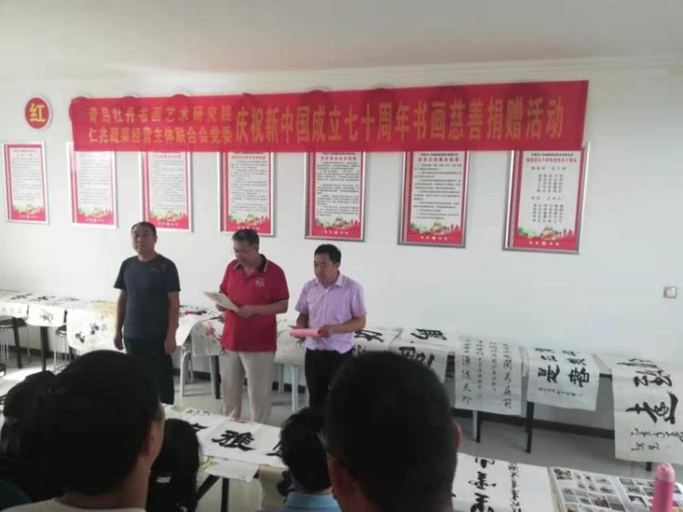 9月19日上午,青岛牡丹书画艺术研究院慈善捐赠活动搞得非常成功圆满。 在平度市仁兆镇党委政府,人大,政协委员和各企业家的支持协办下,该院捐赠80余幅优秀书画作品,并进行了现场拍卖。拍得款项将全部捐赠给仁兆小学,帮助困难学生,让他们顺利完成学业 ,实现自己的梦想。
