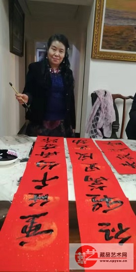 藏品艺术网书画艺委会会员、书画家上官昭月(周晓彤)参加送春联公益活动