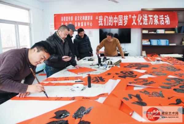 1月7日,由中共沂源县委宣传部、沂源县文旅局、沂源县文联、沂源县融媒体中心主办,沂源县书画院、沂源县书法家协会承办的“我们的中国梦”文化进万家——送春联书画活动走进南麻街道办刘家沟村。书画家们现场创作了200余件春联和书画作品送给广大村民,为他们提前送去了春节的文化年货和美好祝福。(鲁中晨报通讯员 冯玉婷 唐敬国 记者 孙渤海 摄影报道)