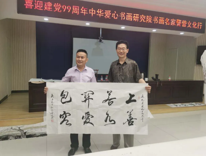 原标题:庆祝建党99周年中华爱心书画研究院携书画名家进警营