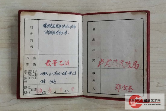 奚利军小心保存着父亲的《革命残废军人抚恤证》