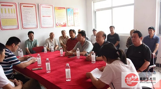活动现场,藏品艺术网爱心书画家联盟和将士丰采书画院艺术家们与卢龙县各级领导同志、大李佃子村参过军的党员们一起座谈