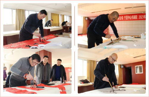 近日,民革宁夏中山书画院联合宁夏百新热力公司共同举办2021年新春联谊笔会。民革宁夏区委会副主委李良等10位书画家与宁夏百新热力公司干部职工会聚一堂,共赏中华文化魅力,共迎新春传统佳节。
