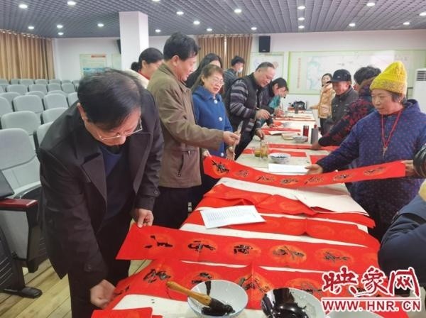 映象网讯 (记者 吴彦飞 通讯员 段玉)1月20日,正值中国传统节日腊八节。俗话说过了腊八就是年,在“腊八节”这一天,商城县政协特邀10名书画家来到里罗城村乡学院,开展迎新春送书画活动。商城县政协主席润道宏与书画家们挥毫泼墨,同写春联,以此歌颂幸福美好新生活。活动中为里罗城村民书写春联上百副,送出书画作品三十余副,送出“福”字百余张。 “新时代百业兴旺,新气象万民安乐”。“神州日丽风光好,大地春回气象新”。“春满乾坤福满门,天增岁月人增寿”。一幅幅寓意吉祥的春联从他们的笔下流出,一个个饱含祥瑞的福字从他们的指尖跳出,红红火火的年的气息就这样扑面而来。 当飘着墨香的春联拿到手上时,村民们脸上洋溢着幸福的笑容,亦如看到了美好生活与前景。 此次活动,持续了3个多小时,不仅为村民们送去了新春祝福,同时还营造了浓浓的传统文化喜气氛围,受到了村民们的欢迎与好评。 【来源:映象网】 版权归原作者所有,向原创致敬